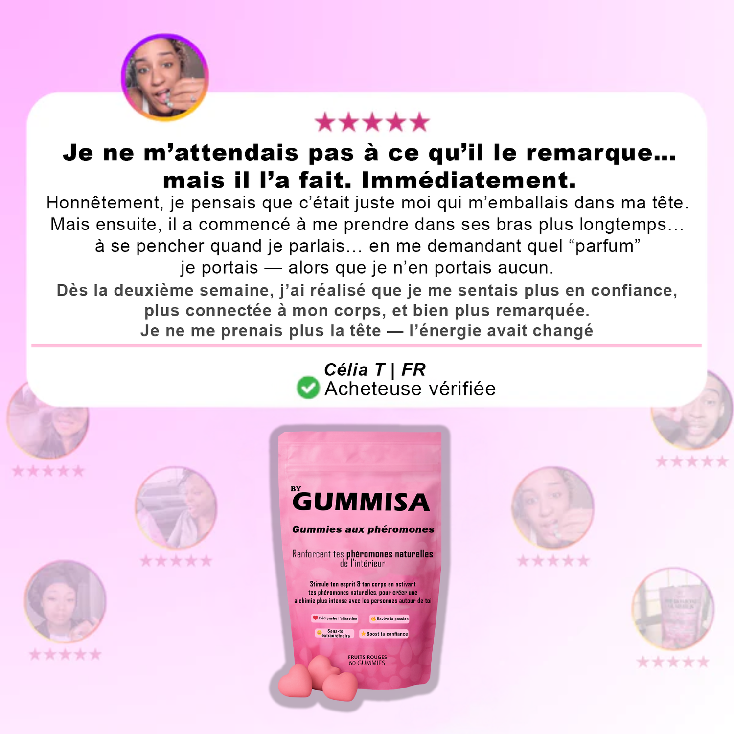 Gummisa™ est destiné aux femmes qui veulent se sentir plus confiantes, désirées et irrésistibles, que ce soit en soirée, au travail ou dans la vie de tous les jours.